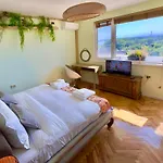 Από την βεράντα οι επισκέπτες μπορούν να δουν θέα σε βουνό.